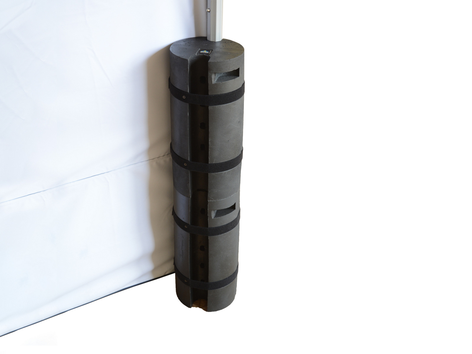 Alle Gewichte werden am Fuß des Zeltes angebracht. Die Sandgewichte und die Gummigewichte haben zusätzlich noch Klettbänder zur Befestigung.