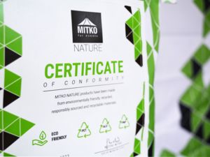 Kartonagen für den Transport bestehen aus recyceltem Papier, von nicht verkauften Zeitungen. Folien und Bänder sind ökozertifiziert.